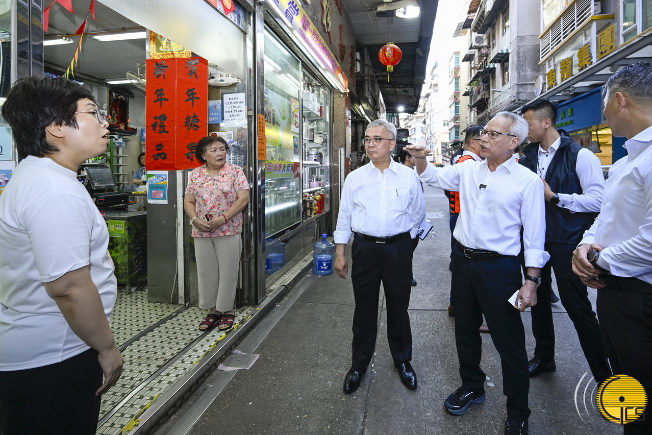 • 行政法務司司長張永春到氹仔黑橋街、地堡街一帶視察。