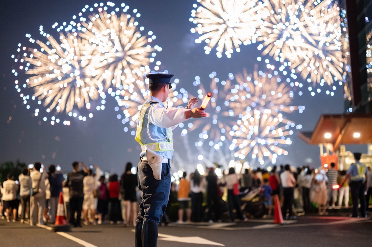 “第33屆澳門國際煙花比賽匯演”分別於10月1日、2日及6日上演六場表演,屆時預計有大量市民及旅客外出觀賞煙花及慶祝節日,治安警察局將加派人員在旅遊塔一帶道路以及氹仔海洋大馬路一帶疏導人流和車流,以保持交通順暢有序,同時亦將按情況實施臨時交通措施。另外,於節假日期間,警方將加強打擊酒後駕駛及的士違規等行為,切實保障市民旅客出行安全與道路通行秩序。
