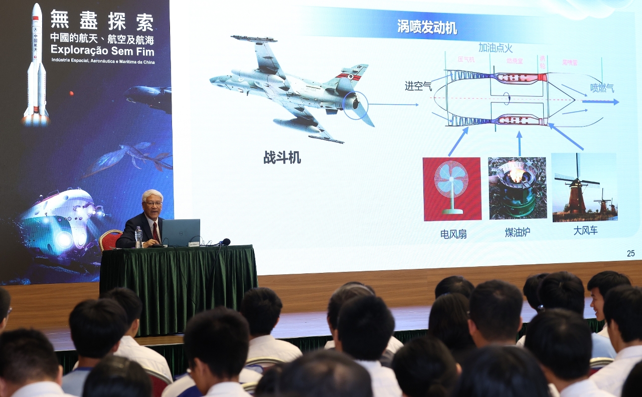開幕儀式後,尹澤勇院士為現場學生進行專家講座,進一步提升青年學生對學習科普知識的興趣。此外,五位科普專家於同日下午分別到濠江中學、慈幼中學、化地瑪聖母女子學校、教業中學和石排灣公立學校開展圍繞中國航天、航空及航海發展的主題講座,主題包括“強國之心飛機之心——航空發動機”、 “嫦娥六號月背之旅”, “ 衝破引力:火箭如何升空的?”、“遠望號研製看海上中國夢” 、“解讀人類飛行密碼”和“探秘國產大型郵輪——愛達‧魔都號”。