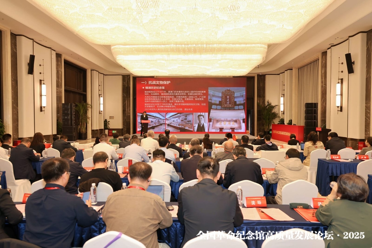 由國家文物局主辦的“全國革命紀念館高質量發展論壇・2025"於9月28日至29日在黑龍江省哈爾濱市舉行。本屆論壇圍繞抗戰文物保護、講好抗戰故事、弘揚抗戰精神進行分享交流,文化和旅遊部副部長、國家文物局長饒權出席並作主旨報告,全國各地革命文物保護利用相關單位、專家學者參會交流,文化局副局長蔡健龍會上介紹澳門抗戰文物保護、弘揚抗戰精神,以及紀念抗戰勝利80周年活動的相關情況。