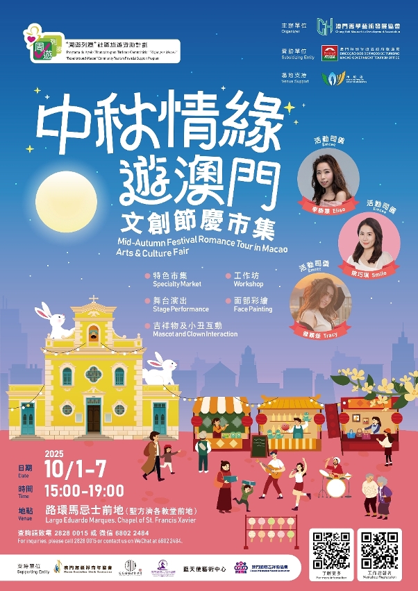 同期在路環馬忌士前地(聖方濟各聖堂前地)舉行之“中秋情緣遊澳門–文創節慶巿集”,包括有節慶裝置、文創市集、手作體驗及街頭快閃互動等,並聯動60家本地商戶推出優惠,引客入區,促進節慶旅遊消費。