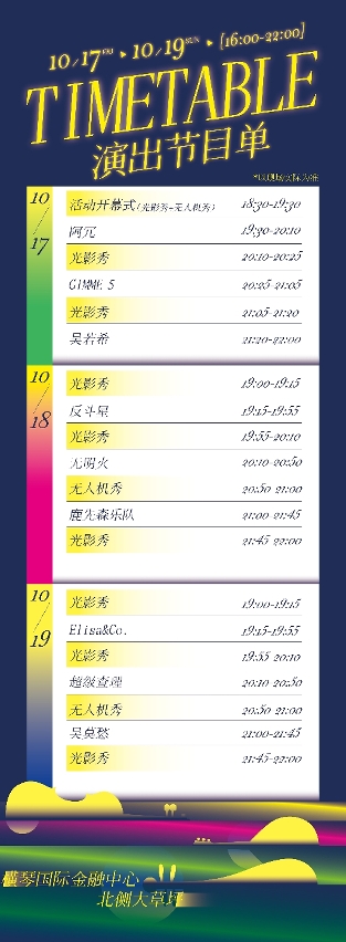 演出陣容星光熠熠,香港知名演員、歌手吳若希,內地民謠樂隊鹿先森樂隊、個性歌者吳莫愁等多位實力唱將及樂隊先後登台,用歌聲點燃秋夜。多元音樂風格與前沿科技交相輝映,為市民遊客帶來耳目一新的文化體驗,真正實現「在城市中看演出,在風景裡聽音樂」。