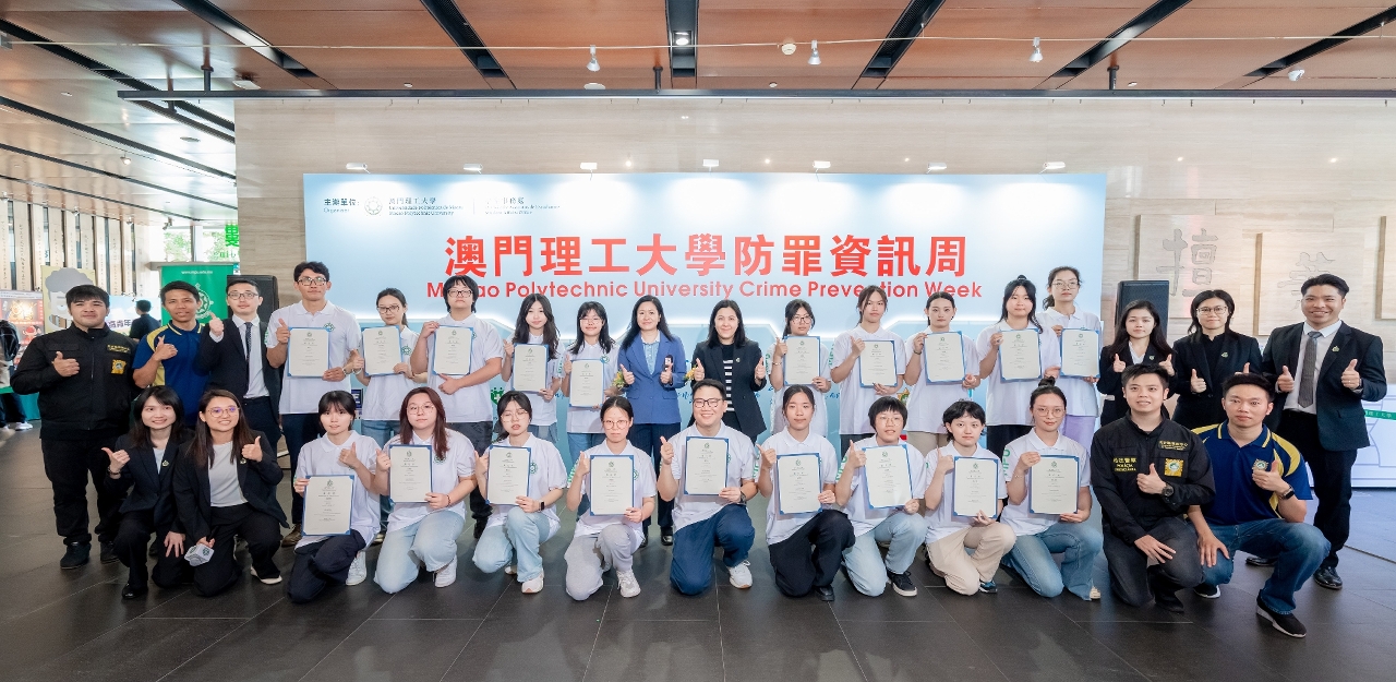 澳門理工大學學生事務處於新學年開學迎新期間主辦“2025防罪資訊周”,本年以“擁抱正向生活,共築安全校園”為主題,與多個政府部門和社會服務機構合作,開展一系列精彩豐富的活動,包括主題宣傳攤位、防騙大使委任、反詐宣傳車進校園、反詐講堂、參觀司法警察局等,透過校警社合作,全方位提升青年學生知法守法意識和安全防範能力,共同築牢校園安全網絡。