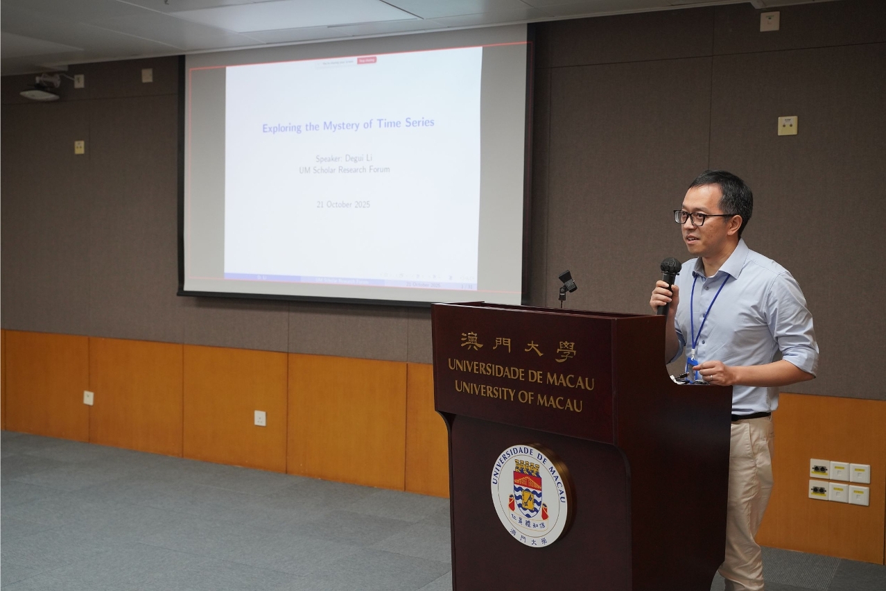 澳門大學今(21)日舉行“澳大學人研究講壇”第28講,由澳大工商管理學院副院長、特聘教授李德櫃圍繞“探索時間序列的奧秘”發表演說,深入探討時間序列的典型特徵、經典模型框架,及其在氣候學、經濟學等領域的實際應用。講座現場反應熱烈,亦有不少師生以線上線下形式參與。