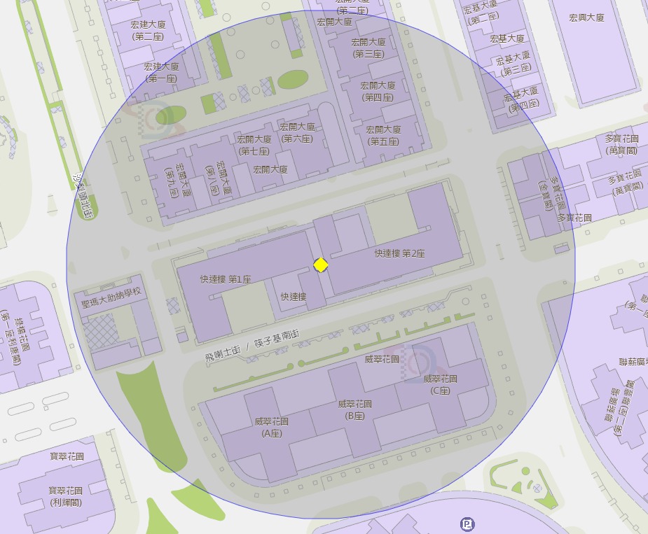 • 快達樓停車場附近風險區域100米半徑範圍
