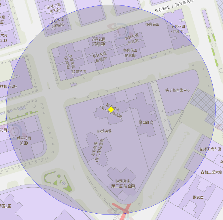 聯薪廣場第一座附近風險區域100米半徑範圍