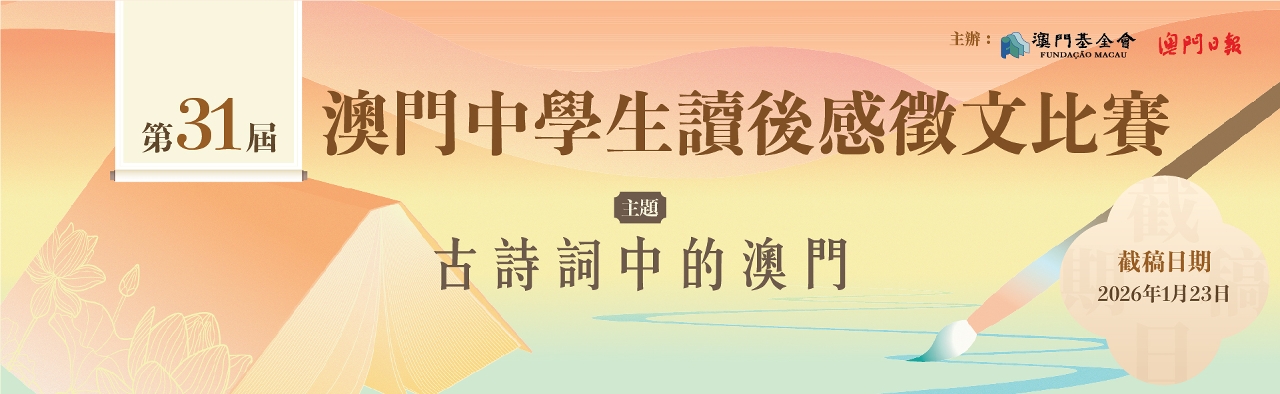 由澳門基金會、澳門日報合辦的第三十一屆“澳門中學生讀後感徵文比賽”,即日起接受投稿,截止日期為2026年1月23日。活動旨在推動澳門學生的閱讀風氣,提高中文寫作水平,歡迎本澳中學生參加。