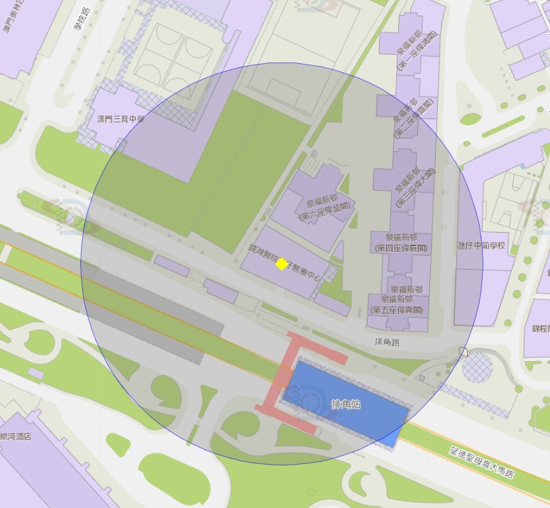 鏡湖醫院氹仔醫療中心附近風險區域100米半徑範圍