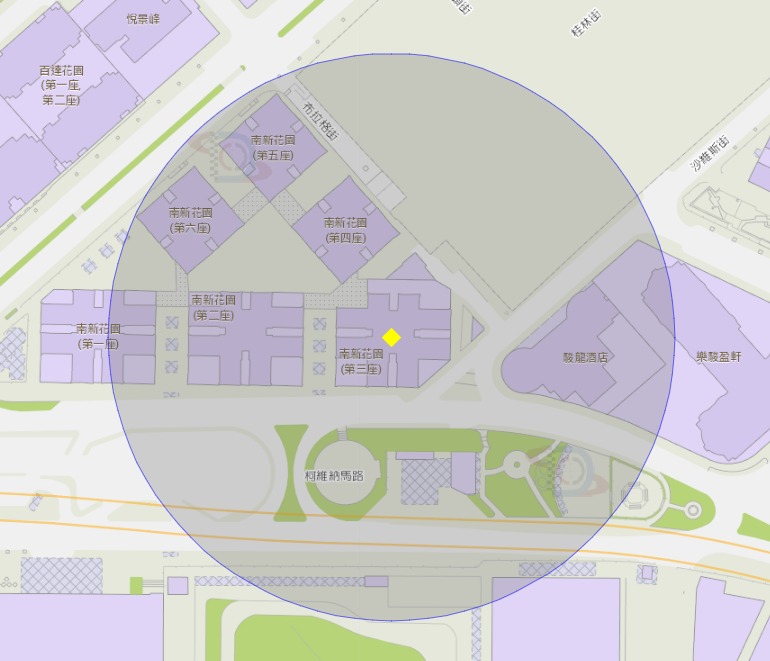 氹仔南新花園第三座附近風險區域100米半徑範圍