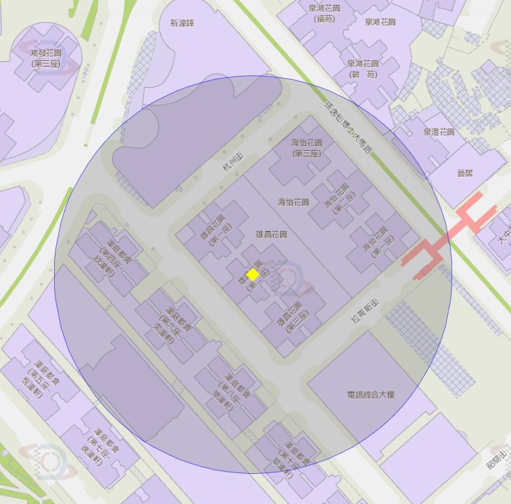 氹仔雄昌花園第二座附近風險區域100米半徑範圍