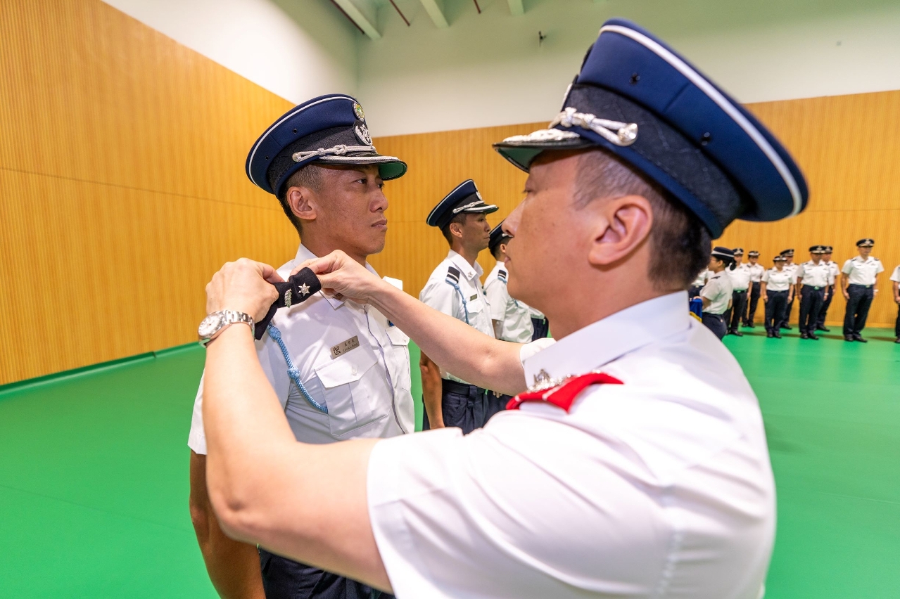 獲晉升人員宣誓後,由助理關長葉華釗及代助理關長吳嘉慧為各人佩戴肩章,正式履新成為關務督察。儀式上還向是次晉升課程獲得總成績優異獎的鄭振雄頒發了獎項。