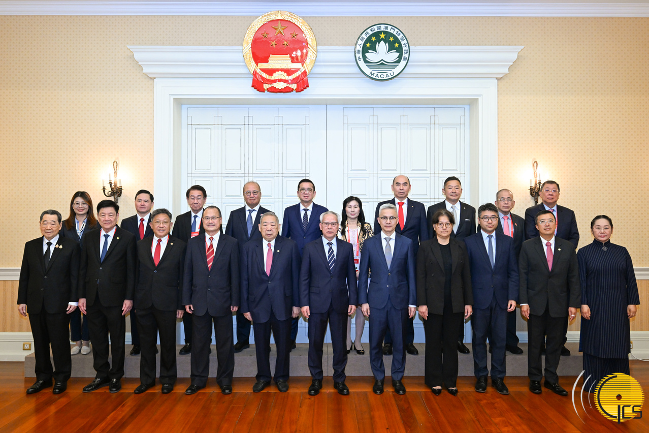行政長官岑浩輝今(3)日下午在政府總部與澳門中華總商會會長崔世昌及世界華商大會顧問委員會成員會面,就澳門與橫琴粵澳深度合作區的制度優勢、投資與營商環境等議題交流意見。