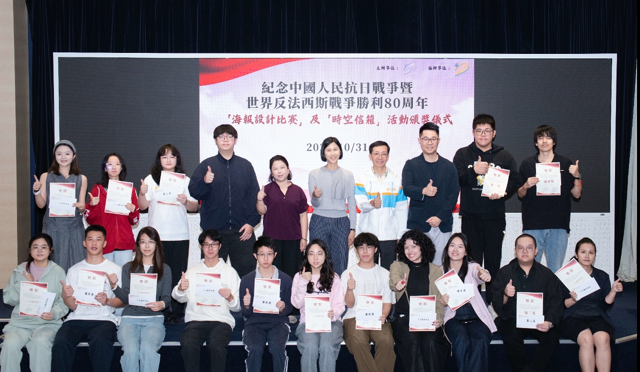 為紀念中國人民抗日戰爭暨世界反法西斯戰爭勝利80周年,澳門旅遊大學學生會主辦、學生事務處協辦之“海報設計比賽”及“時空信箱”寄語徵集活動頒獎儀式於10月31日順利舉行。