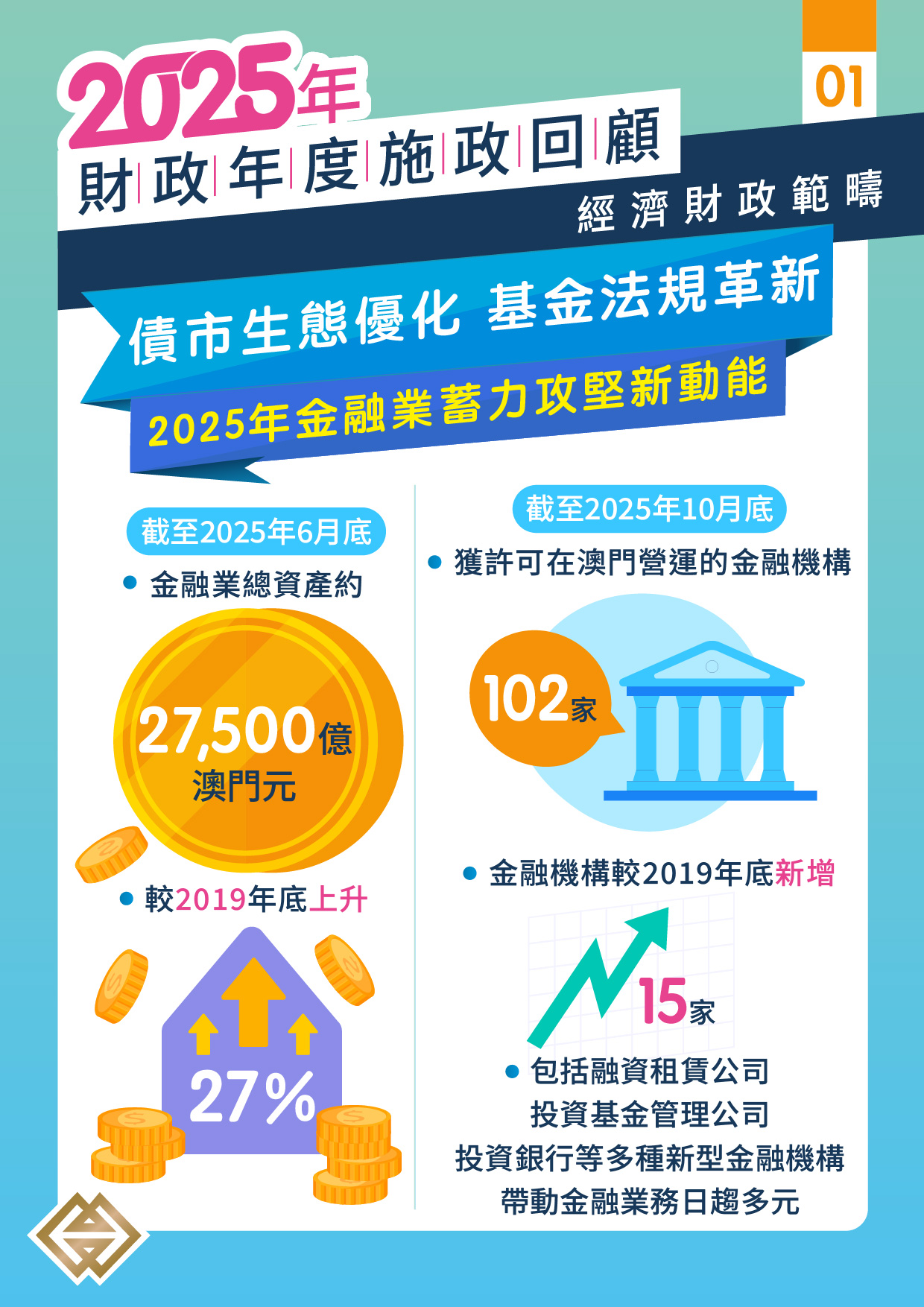 為落實2025年施政報告提出持續推動現代金融業提質發展的方針,澳門金融管理局(下稱“金管局”)在築牢金融風險防線,維護金融體系穩健的基礎上,致力拓展債市、基金等新興業態的發展空間,完善制度框架與法律法規,以創新驅動行業變革,培育增長新引擎。