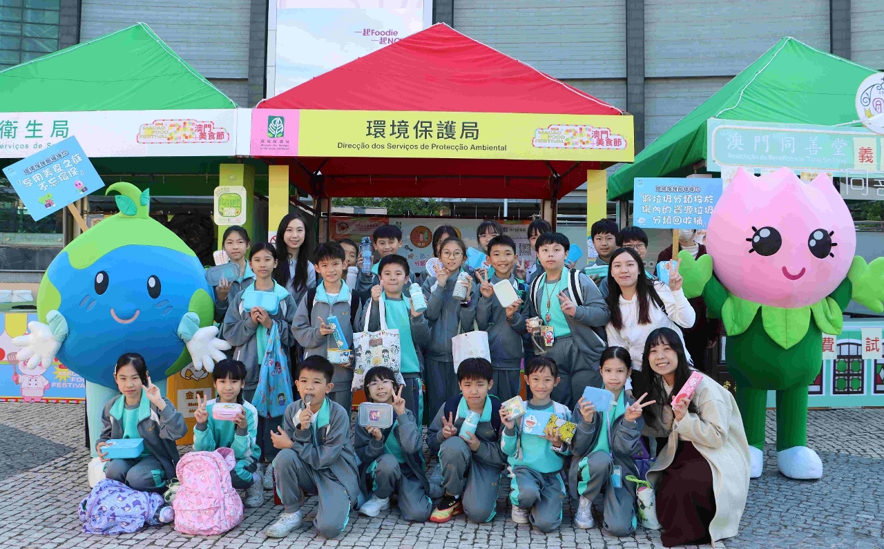 環境保護局舉辦“環境保護局吉祥物與您暢遊美食節”活動,組織了綠色學校澳門工聯職業技術中學約25位師生,於澳門美食節期間共同實踐減少使用一次性餐具、資源垃圾分類回收、廚餘回收、惜食等低碳行為。