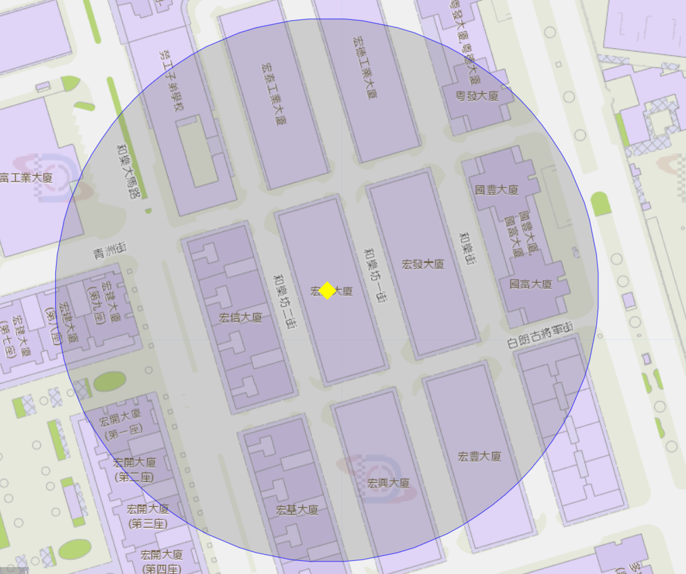 和樂坊二街28至56號宏昌大廈附近風險區域100米半徑範圍