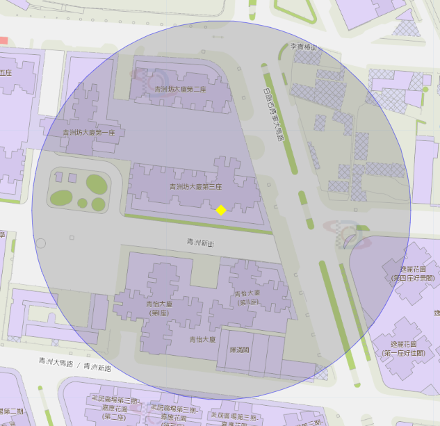 青洲新街青洲坊大廈第三座附近風險區域100米半徑範圍