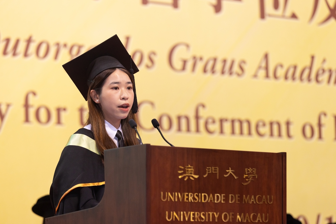 今年共有2,242名來自澳大人文學院、工商管理學院、教育學院、健康科學學院、法學院、科技學院、社會科學學院、應用物理及材料工程研究院、中華醫藥研究院、協同創新研究院、微電子研究院的博士學位、碩士學位和學士後文憑課程的畢業生。其中獲頒博士學位407人,碩士學位1,782人,學士後文憑課程53人。