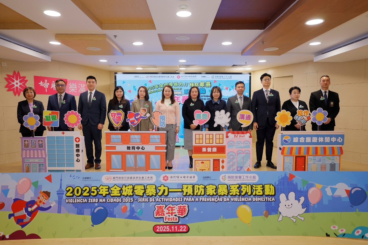 由社會工作局及澳門婦女聯合總會合辦、預防家暴工作小組協辦的 “2025年全城零暴力-預防家暴系列活動”,已於11月22日(星期六)下午在婦聯樂滿家庭服務中心順利舉行;現場設有攤位遊戲及留影區等,以多元化方式向巿民宣傳預防家暴的訊息,共同響應全城零暴力,活動吸引約338人參與。