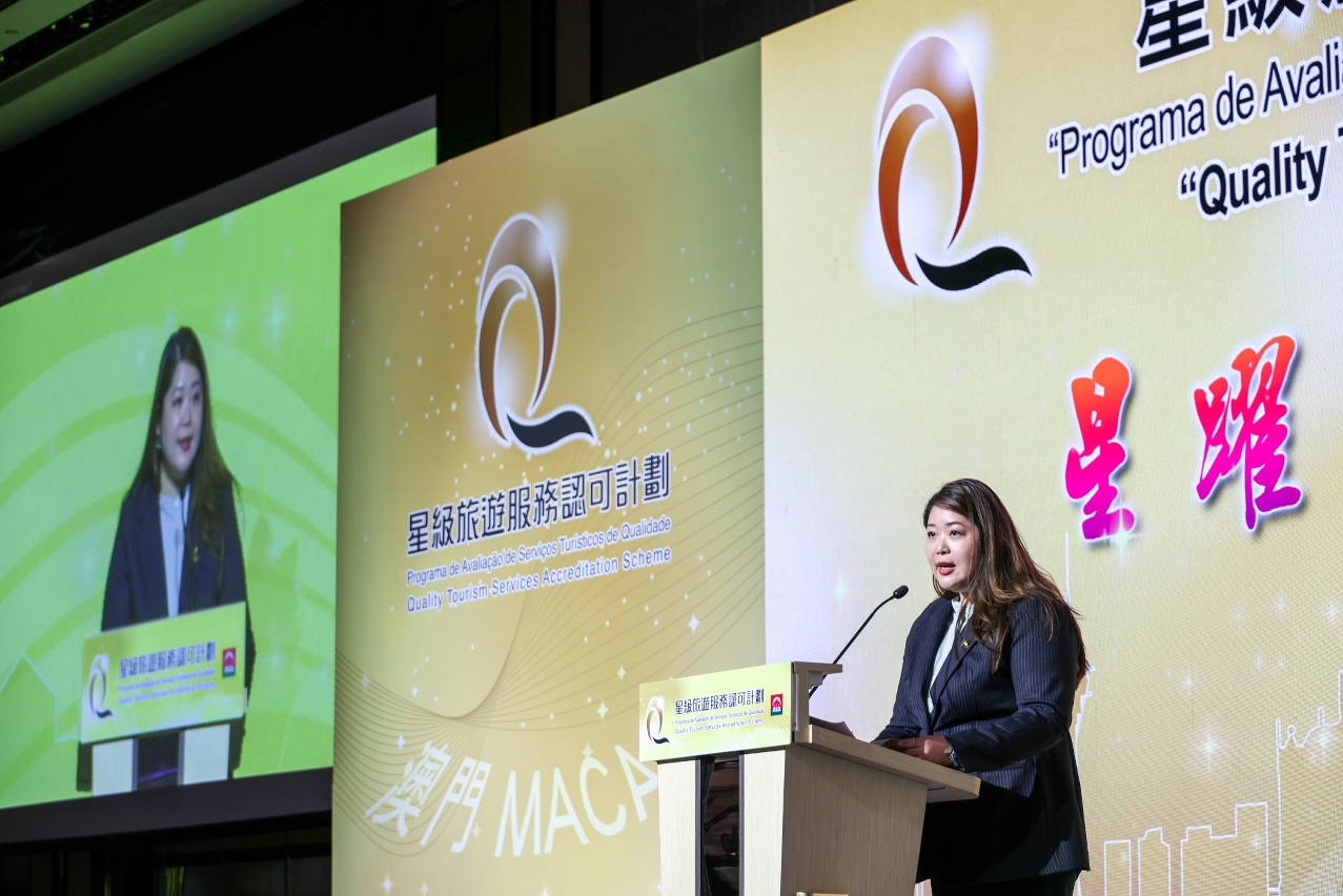 代局長司徒琳麗致辭時表示, “星級旅遊服務認可計劃”旨在確立旅遊業的服務標準,提升服務質素,並表揚提供卓越服務的旅遊業界商戶,支持旅遊及相關行業提升服務水平。同時繼續推行“澳門有禮運動”,向業界和居民傳遞有禮訊息,推動相關業界前線人員在工作實務中貫徹以禮待客人的服務品質,將優質服務文化從旅遊業輻射至社會各界,鞏固澳門“世界旅遊休閒中心”地位。