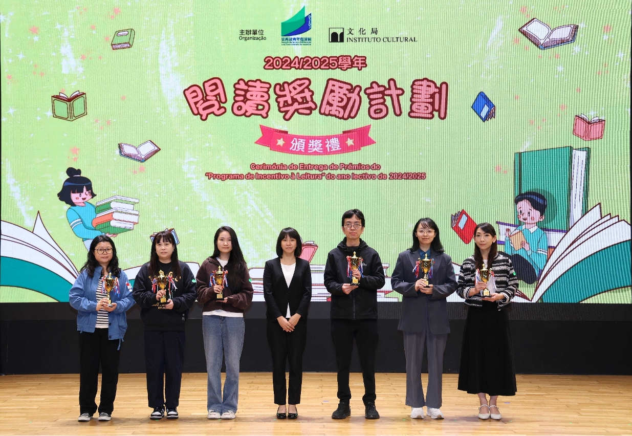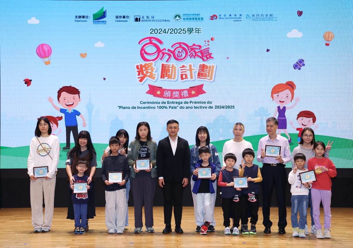 為表揚過去一年積極參與“百分百家長獎勵計劃”活動的家長及積極推動學生參與閱讀活動的學校,教育及青年發展局於12月7日在中葡職業技術學校禮堂舉行2024/2025學年“百分百家長獎勵計劃”及“閱讀獎勵計劃”頒獎禮,教青局副局長黃嘉祺、澳門科學館董事余漢生、地球物理氣象局航空氣象及氣候處處長劉英偉、郵電局通訊博物館館長蔡偉斌、文化局公共圖書館職務主管盧小慧,以及參與上述兩計劃的學校和家長會代表等出席活動。