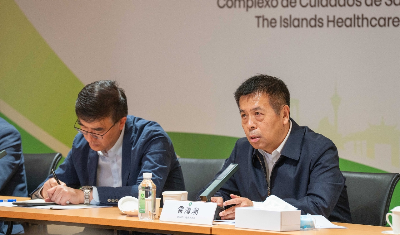 國家衛生健康委主任雷海潮於昨(14)日率團視察離島醫療綜合體北京協和醫院澳門醫學中心(下稱“協和澳門醫學中心”)。在衛生局局長羅奕龍、協和澳門醫學中心院長劉正印、社會文化司司長辦公室顧問呂紅及相關人員陪同下,代表團一行視察了協和澳門醫學中心的綜合病房、日間診療中心、影像中心,以及國際醫療中心,隨後聽取劉院長的工作匯報,並與北京協和醫院駐澳專家們以及協和澳門醫學中心員工代表舉行座談會。