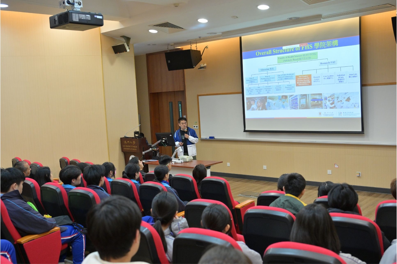探索之旅還安排了入學講座,由澳大健康科學學院助理教授曾華鑫介紹該學院的課程特色、科研平台及發展機遇,並解答報讀流程、獎學金及實習安排,協助學生規劃升學方向。澳大健康科學學院校友、學院實驗室技術人員毛沛祈亦作出分享,詳細介紹了自己在該學院攻讀學士及博士課程的學習歷程,並分享了科研道路上的挑戰與應對經驗。