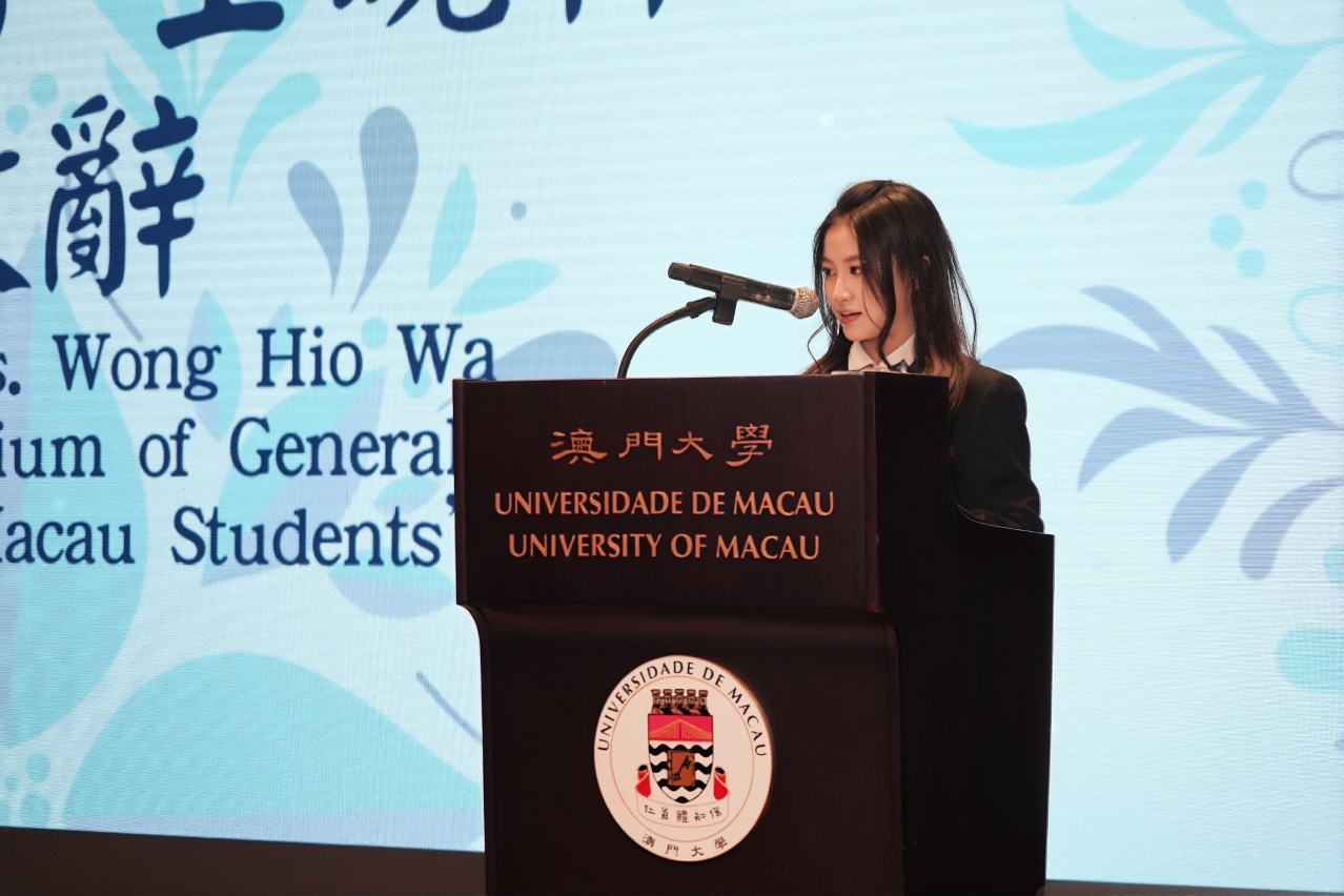 上屆學生會理事長潘星行與現屆理事長劉潔旻進行職務交接儀式。澳大學生會會員大會主席團主席王曉樺表示,學生會過去一年積極推動校園文化,舉辦多項活動增強同學的認同感與參與度。新一屆領導機關將依章履職,完善與附屬組織的協作與監督機制,落實新修規章,同時策劃更多多元活動並深化交流,帶領同學拓展視野、把握粵港澳大灣區發展機遇。她又指,新一屆領導機關未來將進一步提升服務質量和效率,並與各附屬組織保持緊密合作,以積極回應同學訴求及促進校園文化建設,助力同學素質全面發展。