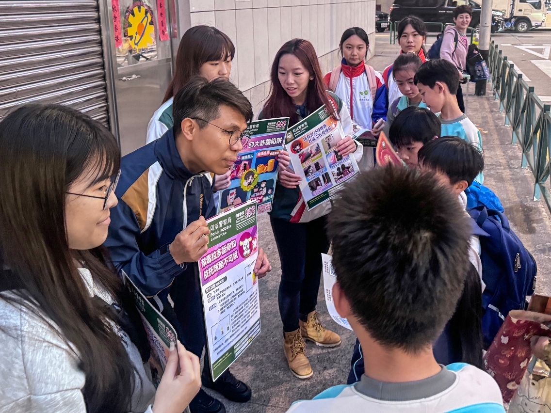 “新春假期前夕警校聯合防罪巡查”由2026年2月4日開始進行,為期一週,期間司警局關注少年科人員聯同24所學校代表和兩項青年計劃學員,前往本澳各區校園周邊及青少年經常聚集的地點進行巡查以了解治安現況,沿途向青少年派發防罪宣傳單張和紀念品,並重點宣講電訊網絡詐騙最新犯罪手法和防範方法。由於青少年在長假期接觸網絡的時間普遍增多,司警局人員特別提醒青少年在使用網絡社交平台時要保持警覺,務須小心保護個人和財務資料,切勿輕信網友所聲稱的身份或輕易答應赴約,以防被騙取金錢或人身安全受威脅;呼籲他們如接獲陌生來電或短訊時應保持冷靜,在循可靠途徑核實對方身份和事件真偽之前,不要透露個人資料或進行匯款、轉帳、共享手機屏幕或登入附帶連結等操作,避免遭受詐騙而招致損失。