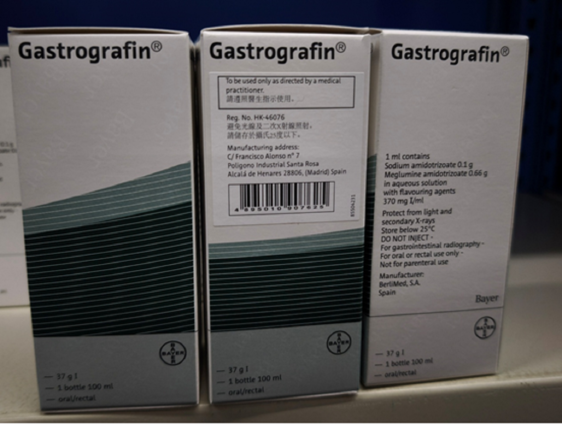 根據本澳藥物入口商的通報,由西班牙“BerliMed, S.A.”生產的一款造影劑“Gastrografin Liq Oral/Rectal”被發現含有超出可接受水平的雜質N-亞硝基葡甲胺(N-Nitroso-Meglumine),作為預防措施,該藥物生產商自願回收已進口本澳4個批次上述藥物,藥物批號分別為MA04HF2、MA04MPR、MA04P3R及MA04S8L。