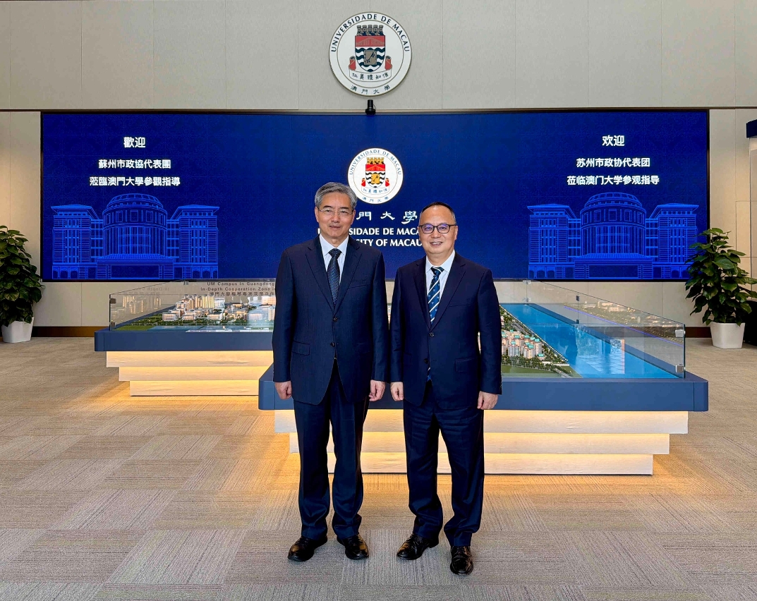 蘇州市政協主席朱民率代表團訪問澳門大學,獲澳大校長宋永華熱情接待。雙方就深化蘇州與澳門高等教育合作、推動產學研協同創新展開深入交流。