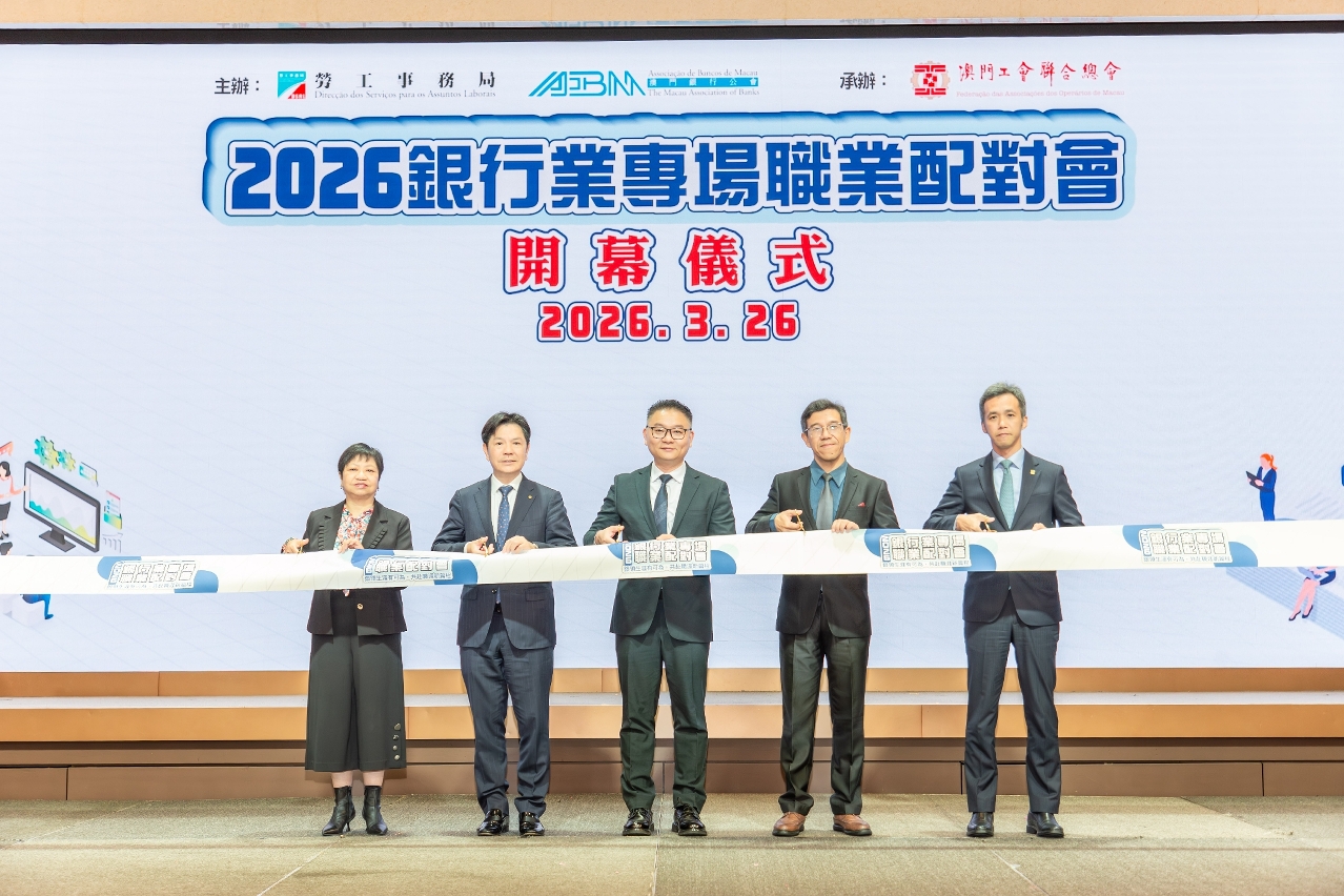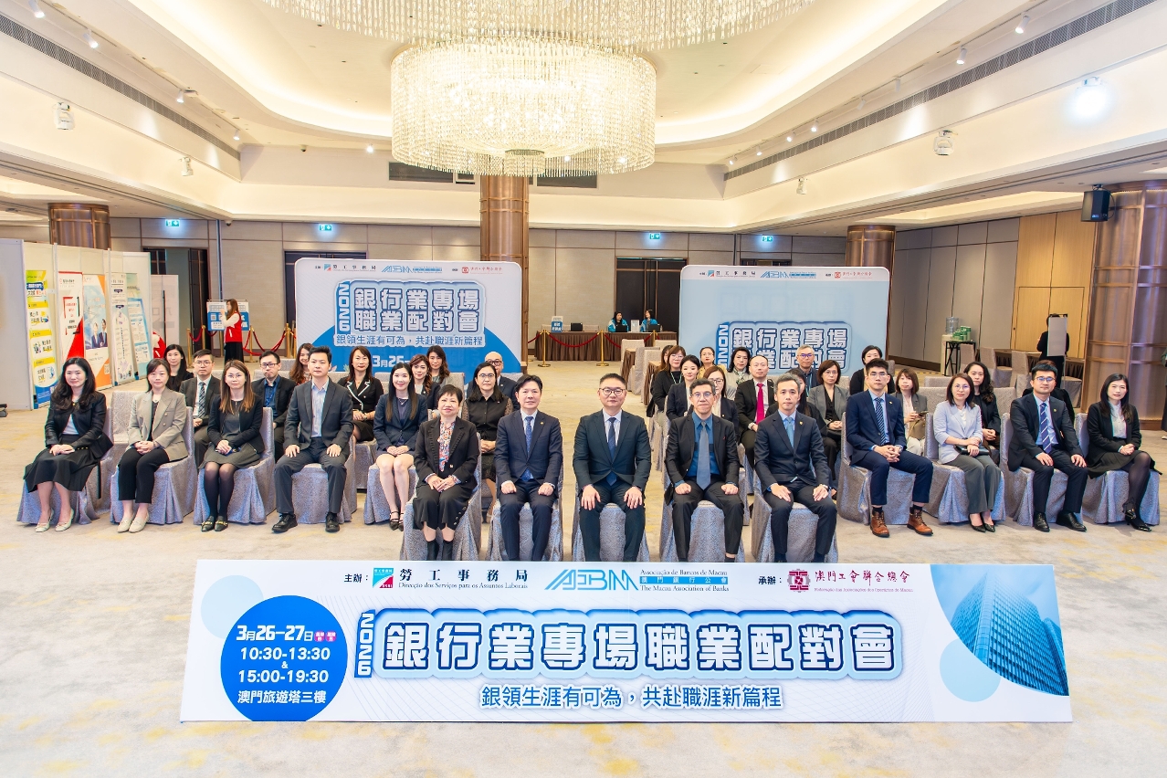 為配合特區政府“1+4”經濟多元發展策略,推動現代金融業高質量發展並優先保障本澳居民就業,由勞工事務局(下稱“勞工局”)與澳門銀行公會合辦、澳門工會聯合總會承辦的“2026年銀行業專場職業配對會”於今(26)日起一連兩日在澳門旅遊塔會展娛樂中心三樓舉行,兩天配對會約有550人次預約到場參與,截至3月26日下午5時,累計約328人次進場。