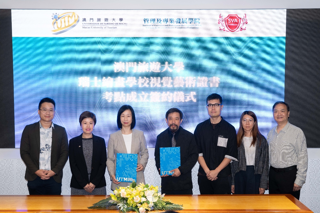 為推動本澳視覺藝術教育的專業發展,澳門旅遊大學管理及專業發展學院(IEPD)與香港教學資源中心於3月24日下午舉行合作協議簽署儀式。是次簽約標誌著澳門旅遊大學正式獲授權為“瑞士繪畫學校視覺藝術分級考試(SVAGE)”在澳門的唯一指定考試中心,為本澳藝術教育發展揭開新篇章。